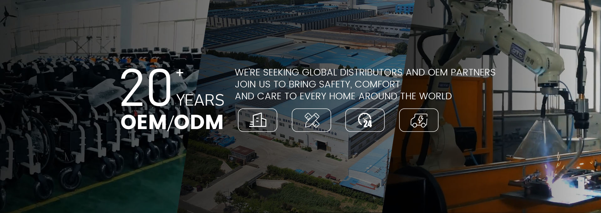 As a professional factory specializing in mobility aids, we manufacture a wide range of products including electric wheelchairs, manual wheelchairs, mobility scooters, rollators, walkers, and walking sticks. With years of production experience, stable output, and strict quality control, we provide reliable products for distributors, hospitals, rehabilitation centers, and medical equipment brands worldwide.